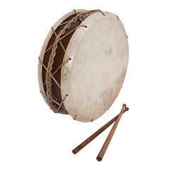 Two goat skin heads are tied to a wooden frame with thread rope. A thread snare is tied to one head. The Playing surface is about 11.5". The drum is about 4.5" deep. Each drum is shipped with a playing sticks.